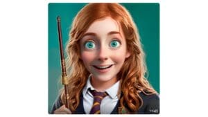 Cada vez que o usuário pede para imaginar um cão, a LuzIA entrega a imagem de um cachorro diferente, com sua assinatura no final. Já na opção “/amigos”, ela envia uma imagem dela adaptada a algum personagem, como a Hermione, de Harry Potter: